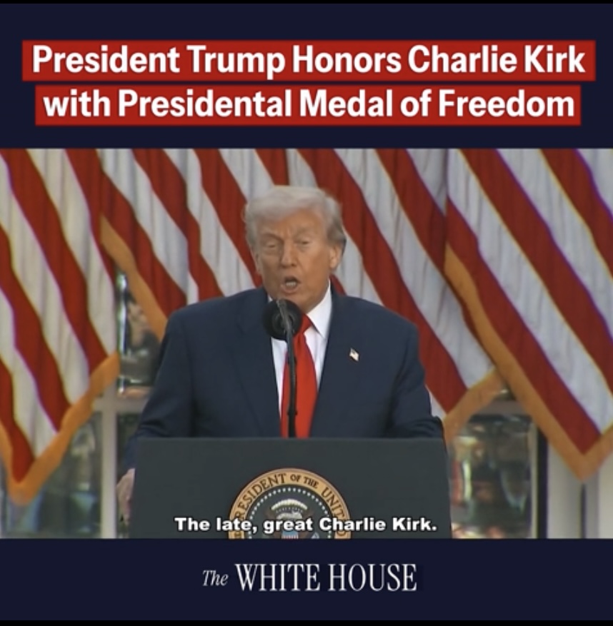 今日,美国川普总统在美国白宫玫瑰园为被政治暗杀的美国保守派青年领袖查理·柯克颁发“自由勋章”, 同时今天也是查理.柯克的32岁生日。美国从1945年杜鲁门总统设立“自由勋章”,至今80年、颁发过710人。但这次给查理.柯克的“自由勋章”,第一次上面有耶稣基督的十字架,凸显了查理是殉道者,意义非凡。
