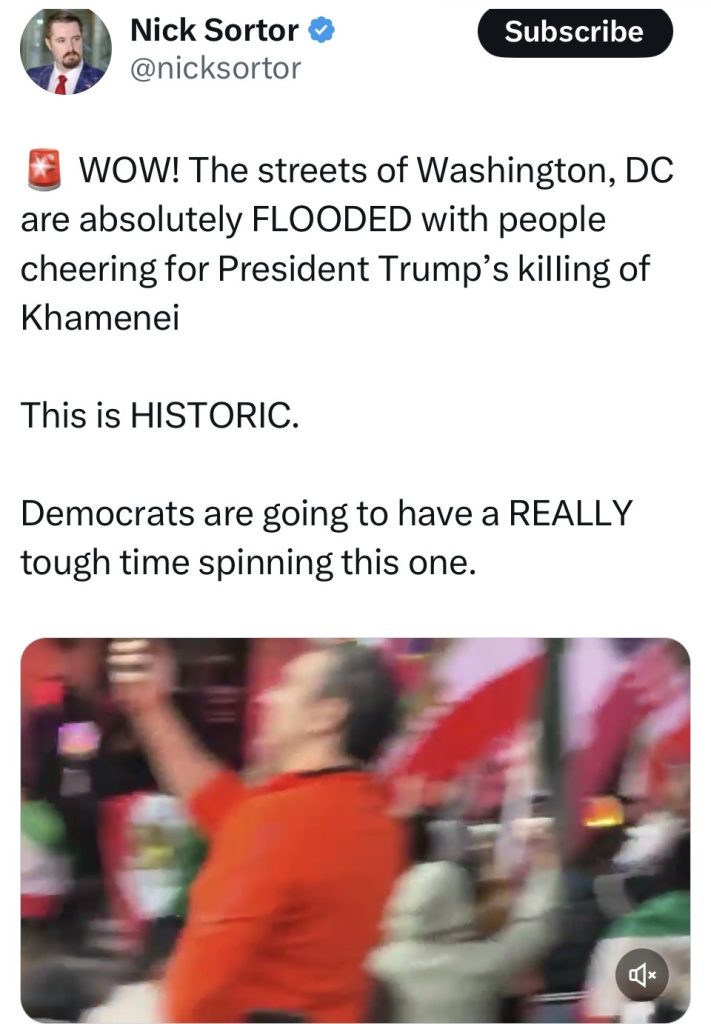 华盛顿特区的街道上挤满了人们,为特朗普总统对哈梅内伊的打击而欢呼